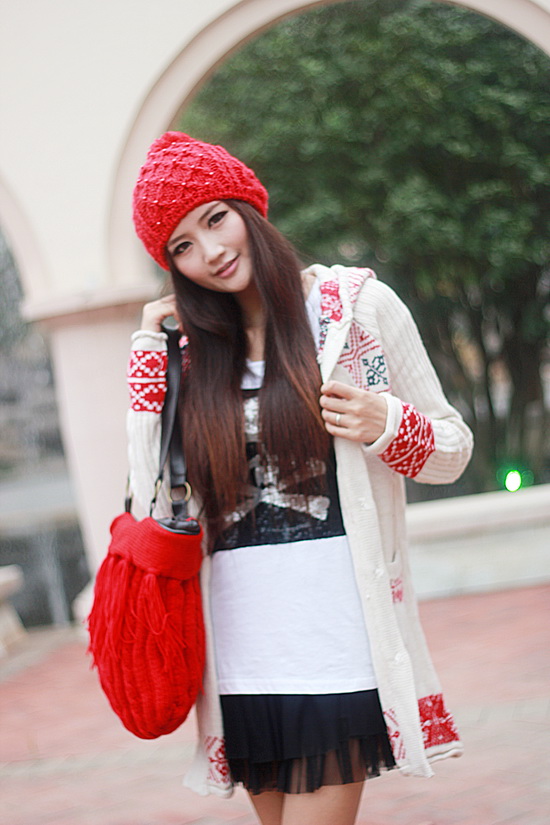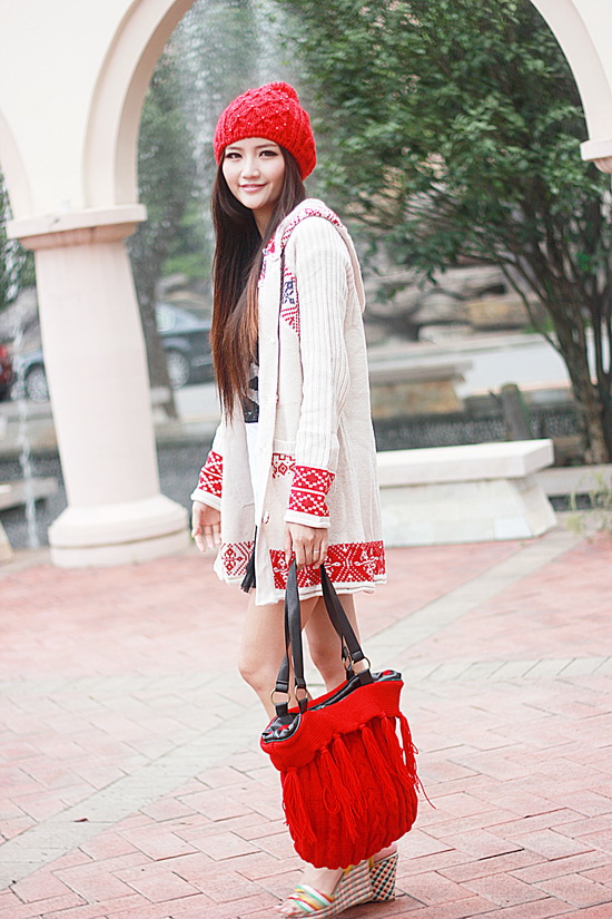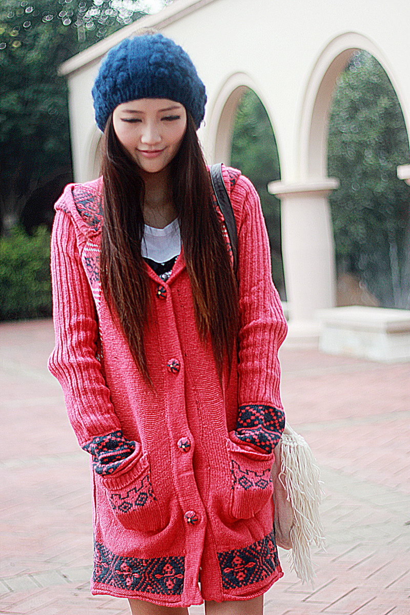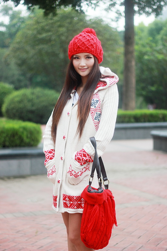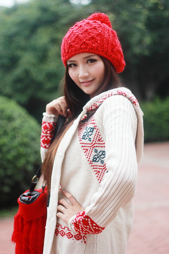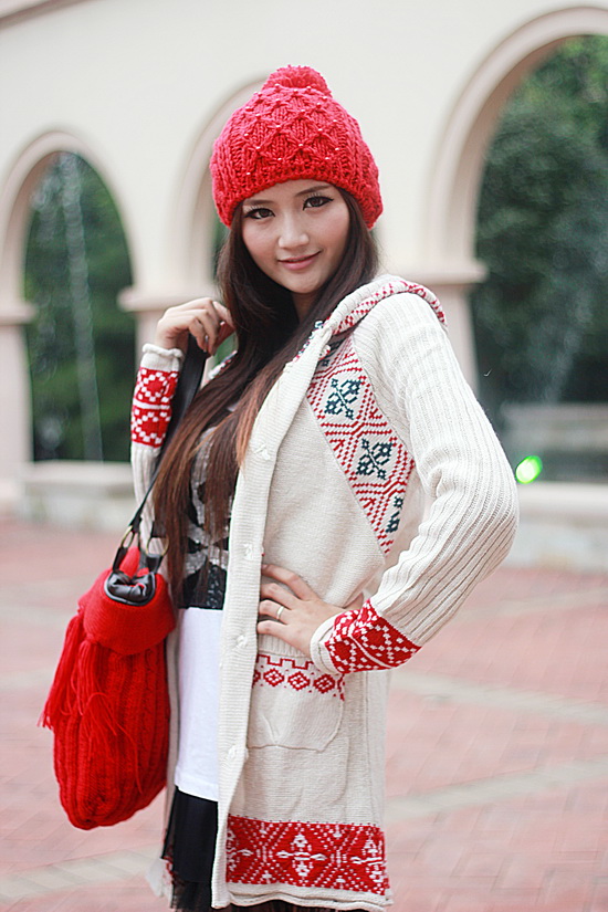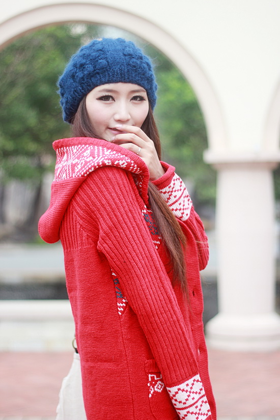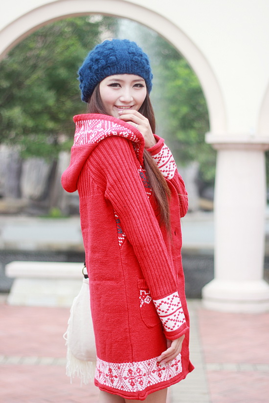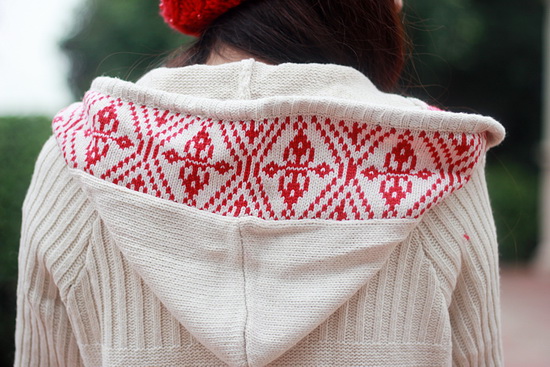 以白色為主色調(diào)看起來比較清新,再配以紅色的伊斯蘭風格的花紋,清新中顯出高雅的氣質(zhì)。后面的小帽帽給人舒適安寧的感覺,俏皮的紐扣仿佛點點繁星點綴在潔白的大地上。整體長版的設(shè)計使身材顯的更加的修長簡約中透著可愛。衣袖采用了豎線條的紋路,使得手臂在視覺上有拉長和顯瘦的效果哦。值得一提的是,此款YY袖子還可以當手套使用的。細節(jié)圖稍后補上!