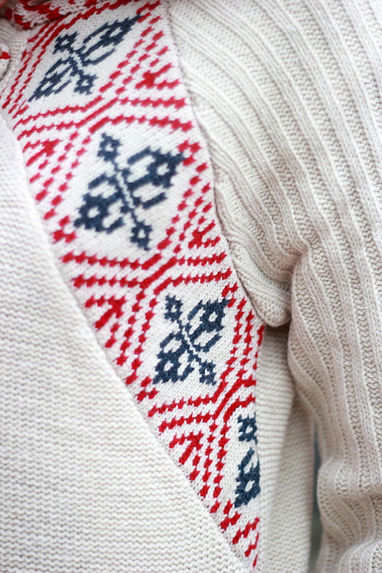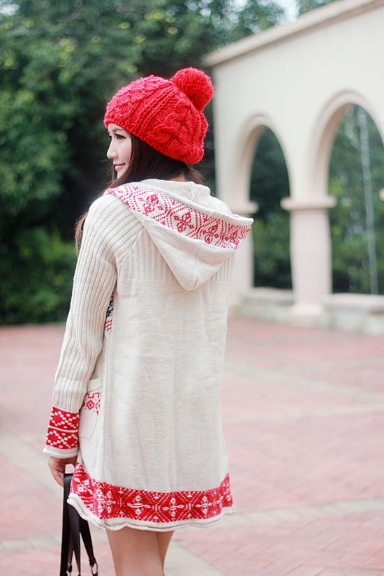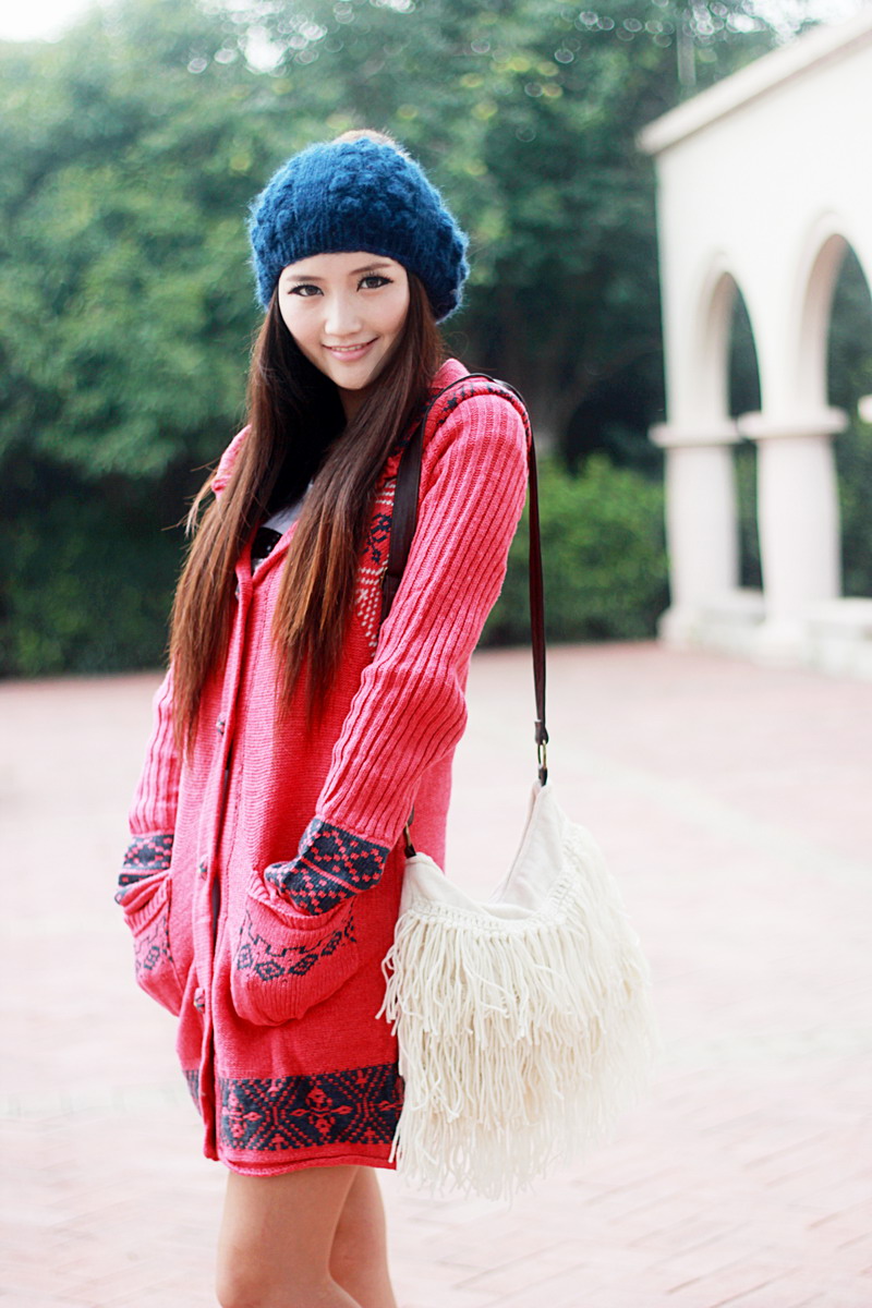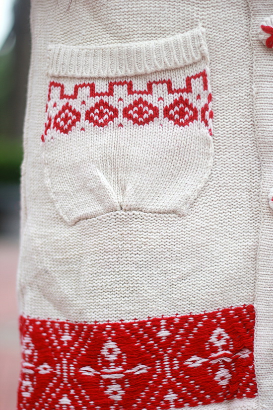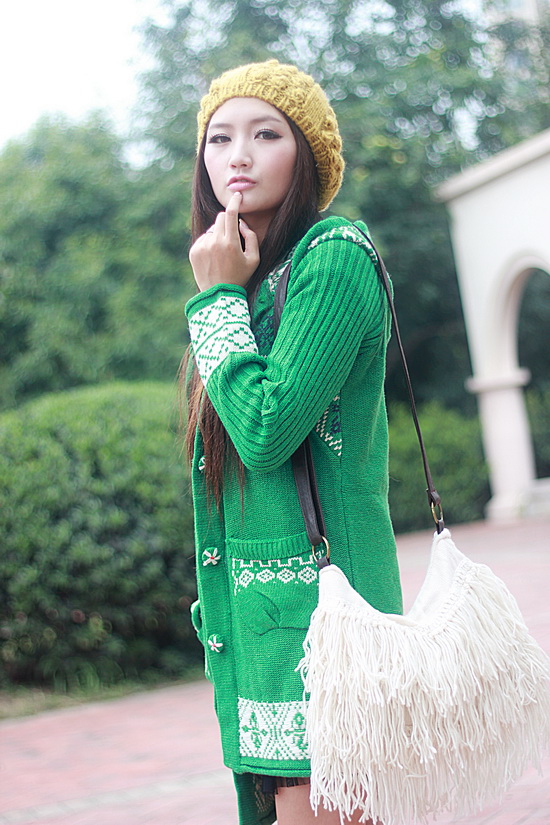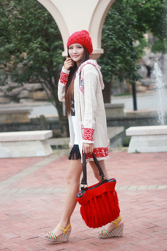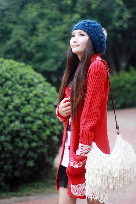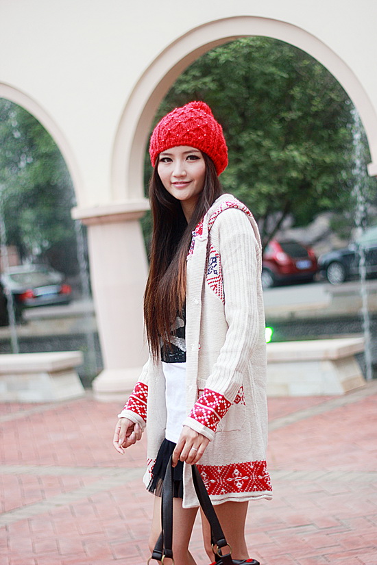 以白色為主色調(diào)看起來比較清新,再配以紅色的伊斯蘭風格的花紋,清新中顯出高雅的氣質(zhì)。后面的小帽帽給人舒適安寧的感覺,俏皮的紐扣仿佛點點繁星點綴在潔白的大地上。整體長版的設(shè)計使身材顯的更加的修長簡約中透著可愛。衣袖采用了豎線條的紋路,使得手臂在視覺上有拉長和顯瘦的效果哦。值得一提的是,此款YY袖子還可以當手套使用的。細節(jié)圖稍后補上!