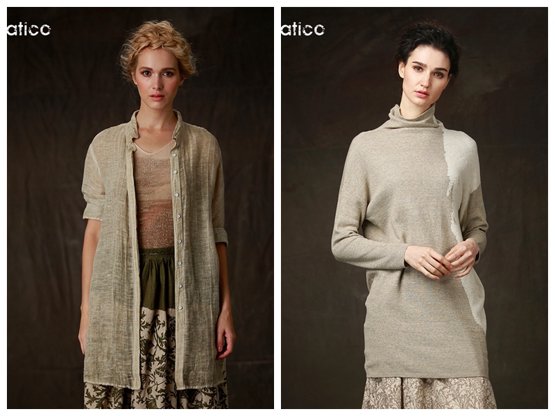 達(dá)衣巖女裝品牌時(shí)裝作品是古典主義、現(xiàn)實(shí)主義和浪漫主義的完美結(jié)合,強(qiáng)調(diào)色彩、面料質(zhì)地和整體款式,注重多用天然的棉、麻、毛、絲等優(yōu)良質(zhì)地的面料和大地、田園、樹(shù)木、苔蘚、蘆葦?shù)茸匀淮緲愕闹行哉{(diào)和的灰色、卡其、泥土色彩、磚瓦、飾品、樹(shù)葉等都能夠成為設(shè)計(jì)師取之不盡的靈感來(lái)源與創(chuàng)作元素。