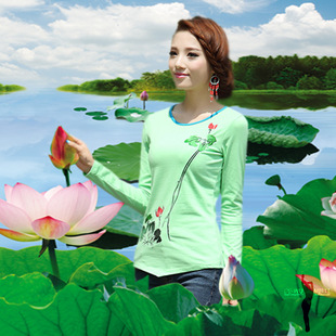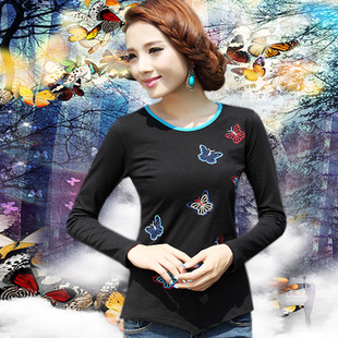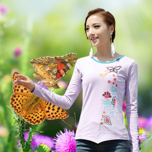 廠家直銷新款品質(zhì)民族風(fēng)長袖T恤彈力純棉繡花女式打底衫特價 促銷29.0 ¥29.0熱銷0