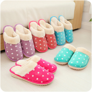 秋冬天毛絨保暖男女士情侶家居拖鞋 居家室內(nèi)冬季圓點棉拖鞋批發(fā)¥ 8.00元