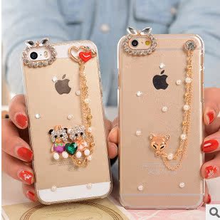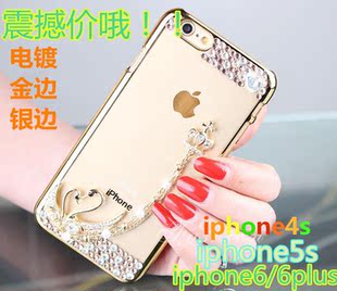 ¥6.50掛鏈裝飾手機殼 蘋果6/6plus創(chuàng)意手機殼 蘋果4 5s貼鉆手機保護套
