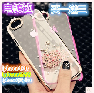 ¥12.00電鍍透明蘋果4s/5s iphone6/6 plus鉆手機殼外殼保護套保護殼批發(fā)