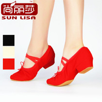 尚麗莎 女式帆布教師鞋軟底帶跟舞蹈鞋中跟練功鞋民族舞芭蕾舞鞋27.00
