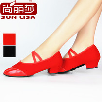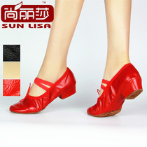 尚麗莎 女式真皮教師鞋軟底帶跟舞蹈鞋中跟練功鞋民族舞芭蕾舞鞋39.00