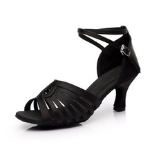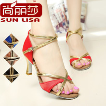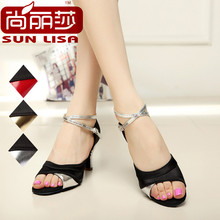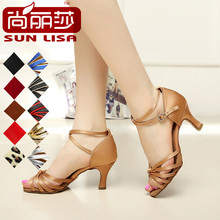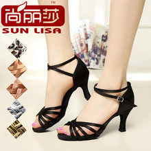 尚麗莎 女士成人軟底緞面中高跟拉丁舞鞋交誼舞國標廣場舞蹈鞋