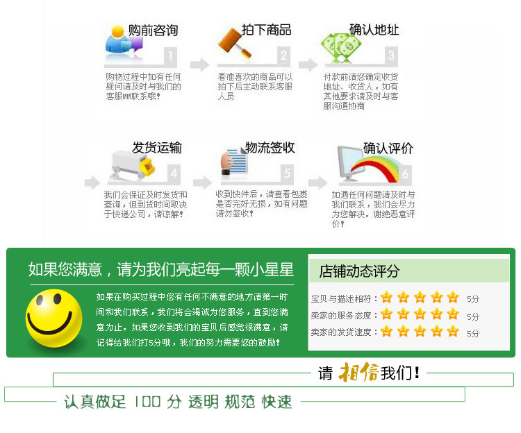 二.付款方式:我們支持支付寶擔(dān)保交易,請您收到貨后核對貨品無問題請當(dāng)天確認(rèn)收貨付款,經(jīng)客服提醒跟催超過三次不配合的客戶,后期合作將不再支持擔(dān)保交易,只接受支付寶即時到帳或銀行匯款。我們做現(xiàn)貨批發(fā)庫存占用資金很多,需要大量的資金周轉(zhuǎn)。