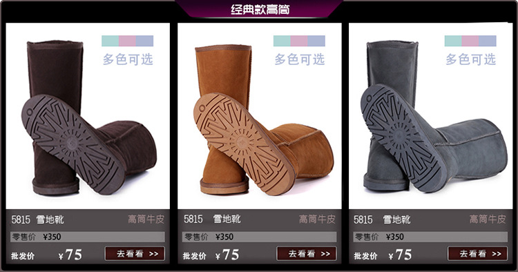 【材 質(zhì)】牛皮,牛筋底,超級(jí)加厚內(nèi)里,1400克密度,一般雪地靴均是900-1100。