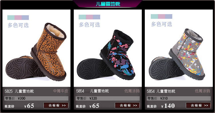 童鞋尺碼24-33碼我們可根據(jù)寶寶的腳長給您定做屬于您寶寶專屬的雪地靴。