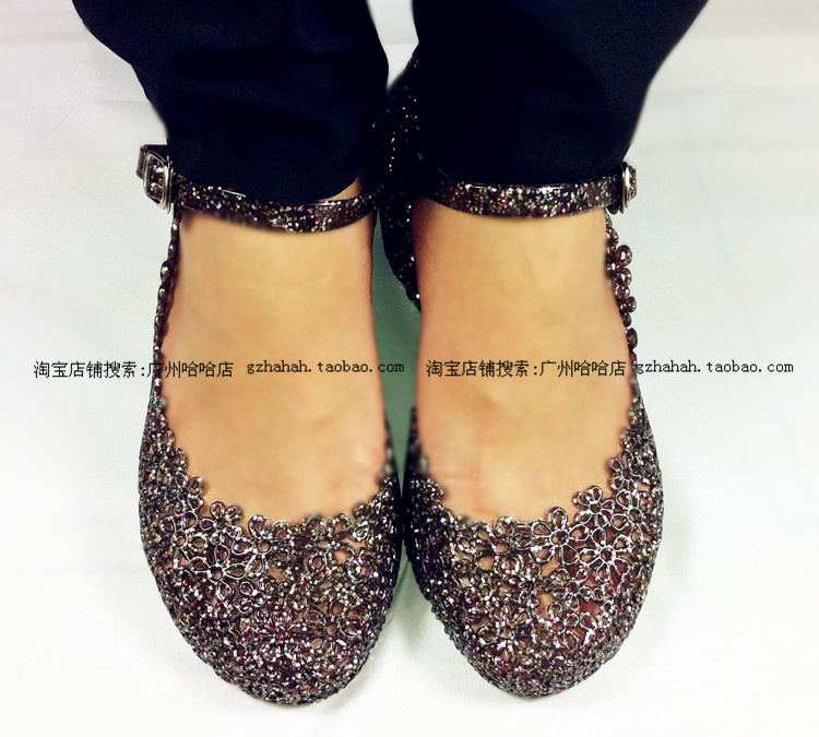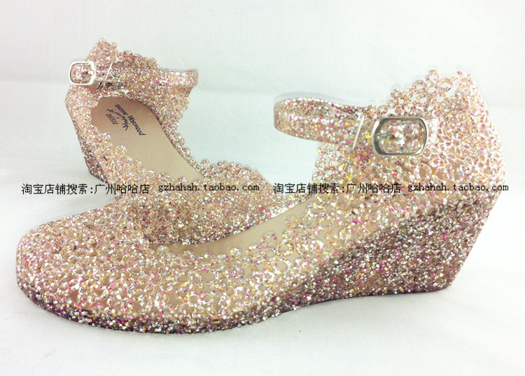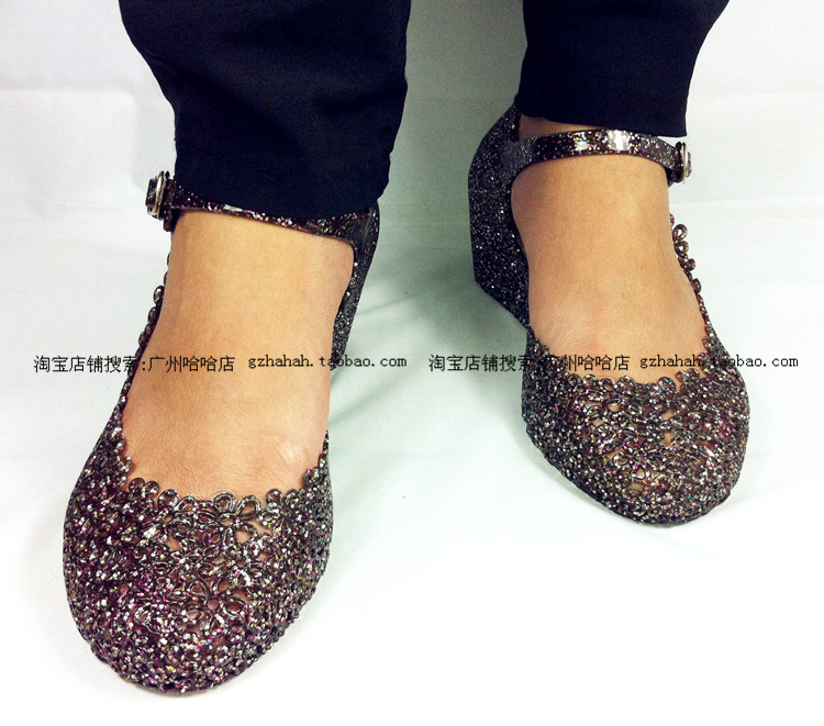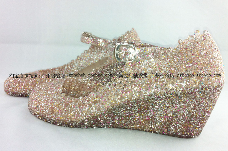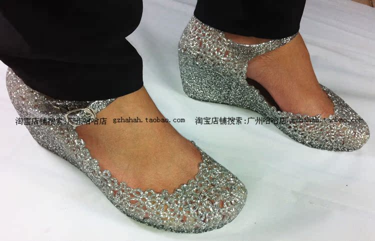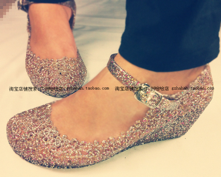 花朵鏤空果凍鞋塑料涼鞋水晶涼鞋坡跟糖果鞋塑膠網(wǎng)狀鳥巢沙灘女鞋
