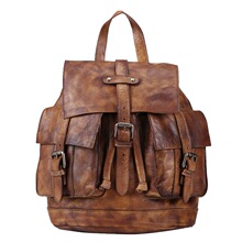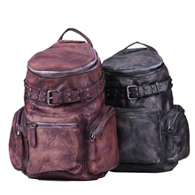 2015新款真皮書包皮帶裝飾 鉚釘雙肩包頭層牛皮復(fù)古背包一件代發(fā)