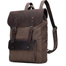 百約男式帆布帶皮飾雙肩包休閑旅行包中學(xué)生復(fù)古書包廠家代發(fā)