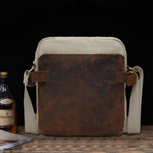 百約男式帆布帶皮飾雙肩包休閑旅行包中學(xué)生復(fù)古書包廠家代發(fā)