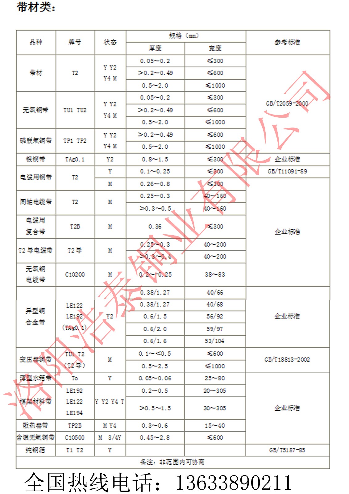 洛陽浩泰銅業(yè)有限公司可生產(chǎn)的紫銅帶規(guī)格有
