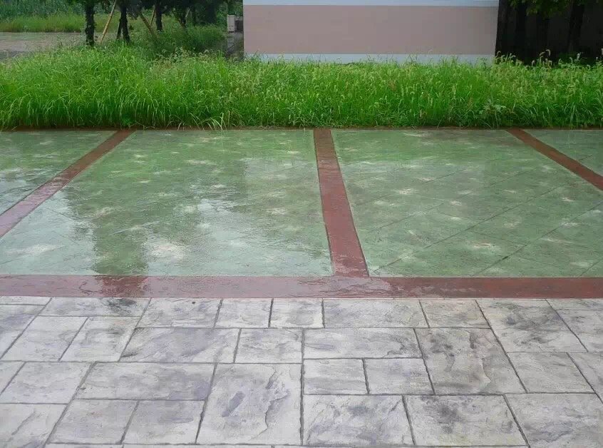 眾多工程實踐證明,在壓花地坪的模板內,按設計布置一定花紋和圖案的襯板,待混凝土硬化拆除模板后,便可使混凝土表面形成立體裝飾圖案,這是一種施工比較簡便、裝飾效果良好的裝飾手段。在滿足設計功能的前提下,將普通混凝土制品設計成一定的造型,既美觀耐久,又經濟實用。
