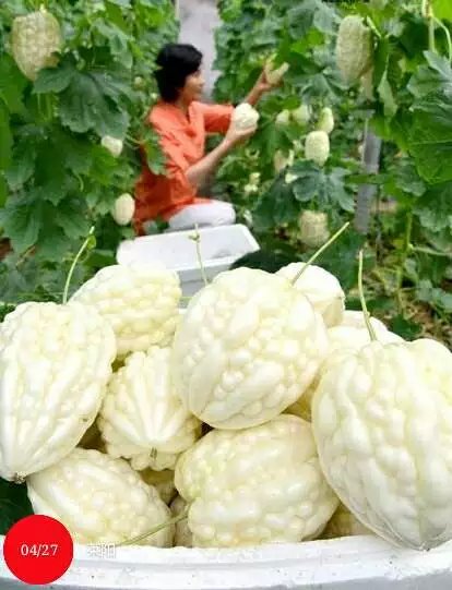 臺灣新育成蘋果苦瓜品種,外形如蘋果,晶瑩剔透,讓人愛不釋手,生吃苦中帶甜,冰鎮(zhèn)后更甜,有水梨般爽脆多汁的口感,吃過這種苦瓜就不愿再吃其他品種的苦瓜了,由于口感好,不用開水焯,食用方便,必將帶來苦瓜革命性的更新?lián)Q代。
