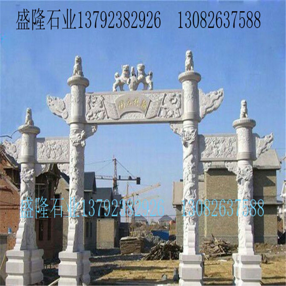 石雕牌坊是指用石頭修建的牌坊,是一種裝飾建筑物。常見于古代陵園。如北京明代陵墓外面的大紅門前,有石牌坊一座。整個牌坊為五間六柱十一樓,結(jié)構(gòu)勻稱和諧,造型美觀大方。牌坊用純一色的漢白玉雕制而成。柱石的上方刻有麒麟、獅子,夾柱石的浮雕有雙獅戲彩珠,牌坊上還雕刻著其他怪獸云紋。是我國建筑藝術(shù)的一大特色。 此牌坊是全石仿木結(jié)構(gòu),亭閣式斗拱建筑,飛檐翅角,三門四柱。高6.80米,寬6.3米。明天啟年間,因土王覃鼎征戰(zhàn)有功,朝廷賜建牌坊一座。整座牌坊上刻有“荊南雄鎮(zhèn)”,反面刻有“楚蜀屏翰”。整座牌坊上刻有“土王巡游”、“漁樵耕讀”、“云吞雨霧”、“哪吒鬧海”、“槐蔭送子”等浮雕圖案。正面兩角有浮雕象鼻對峙。兩側(cè)基石柱各有撐鼓,石柱兩側(cè)配有石獅。牌坊于案運用浮雕、透雕等手法。