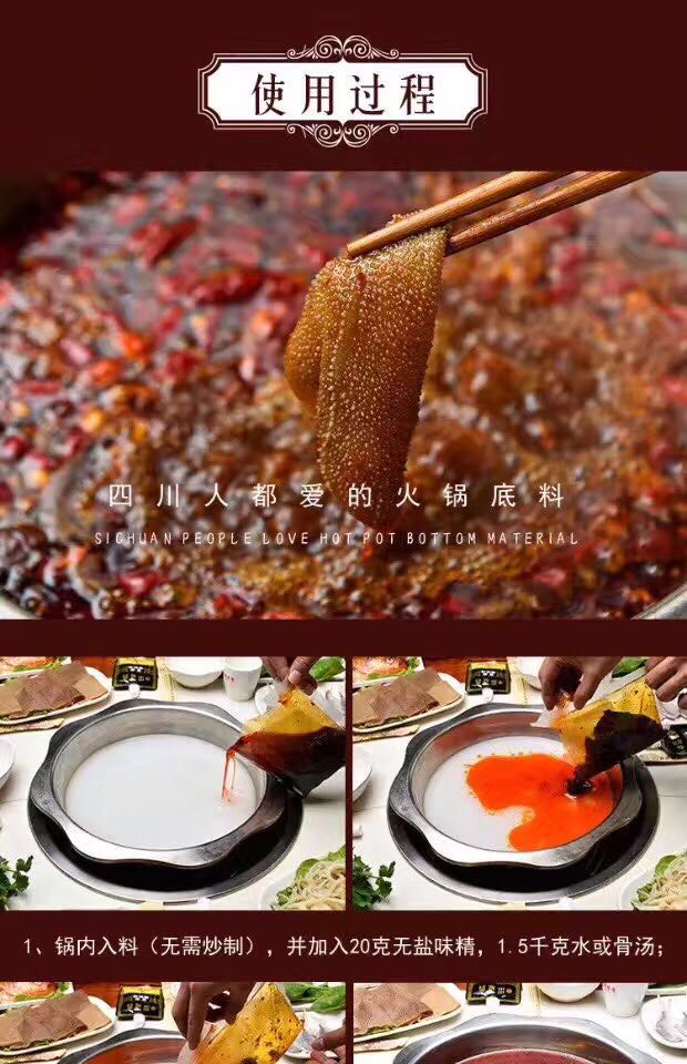 公司在火鍋技術(shù)方面充分汲取四川傳統(tǒng)火鍋的精華,在保持原有麻辣鮮香的基礎(chǔ)上,不斷創(chuàng)新技術(shù),克服了傳統(tǒng)火鍋燥熱神煩、傷津耗液、久食傷身的弊端。公司對火鍋用料極度考究:紅湯油紅發(fā)亮、回味悠長;清湯鮮香醇厚、沁人心脾,食之令人齒頰生香;具有開胃健脾、益氣活血、提精壯神的功效;更能清熱祛火、生津滋心,因此久食不厭,深得全國各地消費(fèi)者的追捧,是賓館、餐廳、火鍋店等、理想的調(diào)料,也是家庭佐餐、饋贈親友之佳品。