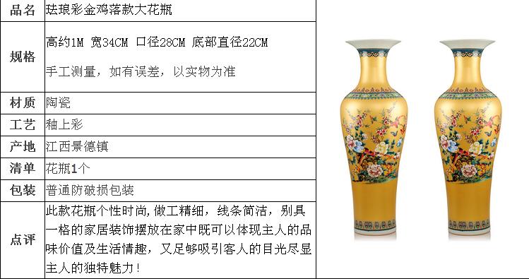 景德鎮(zhèn)定做陶瓷大花瓶傳承千年的中國文化,通過傳統(tǒng)的手工工藝制作出美輪美奐的現(xiàn)代工藝品,逐漸成為樓堂館舍裝飾的點(diǎn)睛之筆。景德鎮(zhèn)市合元陶瓷有限公司專業(yè)致力于定做陶瓷大花瓶,適用范圍廣泛,多用于大廳、門廳、客廳等擺設(shè),主要用于開業(yè)禮品,大樓建筑落成、工程竣工開業(yè)、奠基典禮、酒店賓館陳設(shè)、企事業(yè)單位喬遷、周年紀(jì)念 、學(xué)校校慶、搬遷新居等。定做陶瓷大花瓶的主要特點(diǎn)在于純手工制作、高溫?zé)?、可以根?jù)客戶不同需求定做不同圖案、規(guī)格大小的陶瓷大花瓶。定做這款琺瑯彩金雞大花瓶不僅上檔次,還能彰顯主人尊貴品味與地位,圖案顏色鮮明對比強(qiáng)烈,花朵層次分明,花鳥更是栩栩如生,定做陶瓷大花瓶不僅是現(xiàn)代化的趨勢,許多公司單位開業(yè)慶典,家居裝飾擺上這么一款大花瓶,別具一格彰顯主人風(fēng)范。定做陶瓷大花瓶規(guī)格有1米、1.2米、1.4米、1.6米、1.8米、2.2米、2.6米、3米等不同尺寸,圖案也是各有不同,款款新穎。