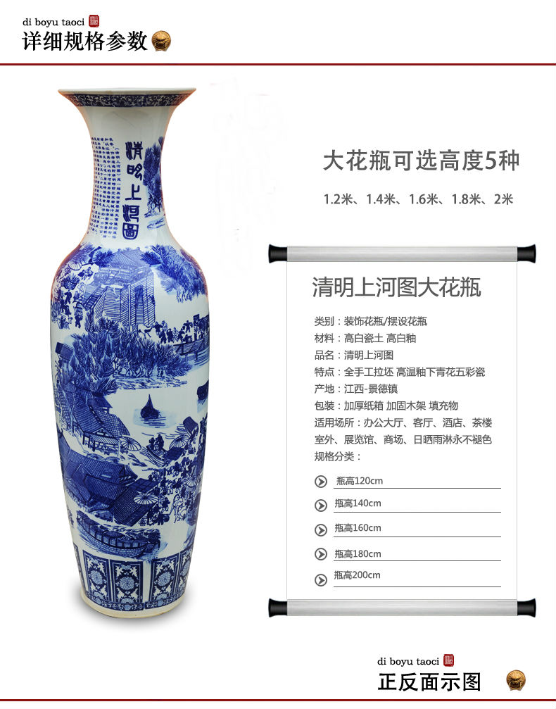 青花瓷給人一種明快、清新、雅致、大方的感覺(jué),并且手感細(xì)膩,所以青花大花瓶也是大家爭(zhēng)先選購(gòu)的一種。景德鎮(zhèn)市合元陶瓷有限公司作為一家專門定制青花大花瓶的廠家,都是純手工制作,經(jīng)過(guò)高溫?zé)?,不褪色,可長(zhǎng)期保存。不論是居家擺設(shè),還是喬遷商務(wù)禮品,亦或是別的用途,青花大花瓶都是一個(gè)不錯(cuò)的選擇。青花大花瓶的款式多樣、圖案豐富,且做工精良。青花大花瓶的常規(guī)有1-3.6米尺寸,還可以根據(jù)不同需求定制加字、logo、圖案等。破損由廠家負(fù)責(zé)、鄭重承諾?。?!